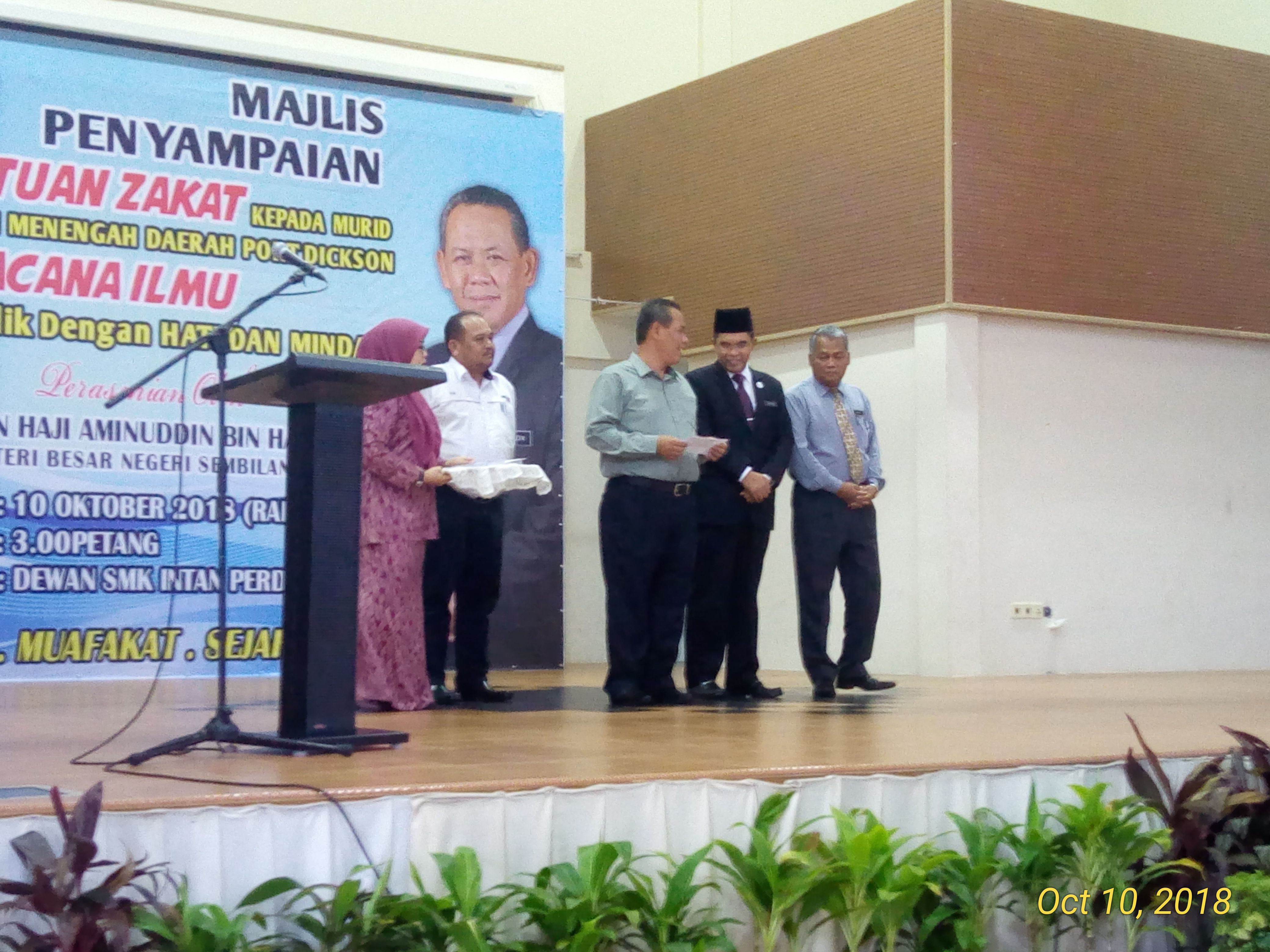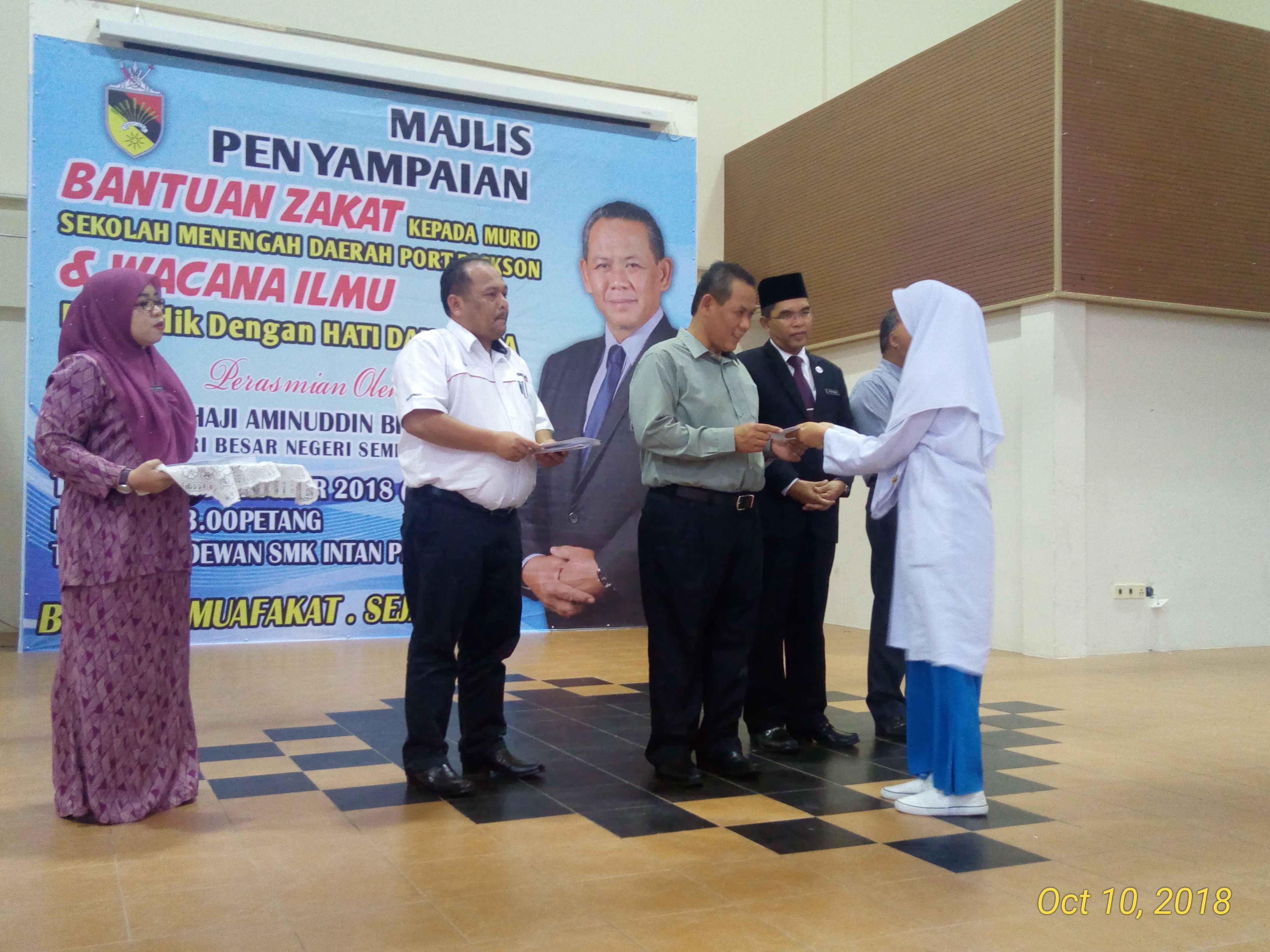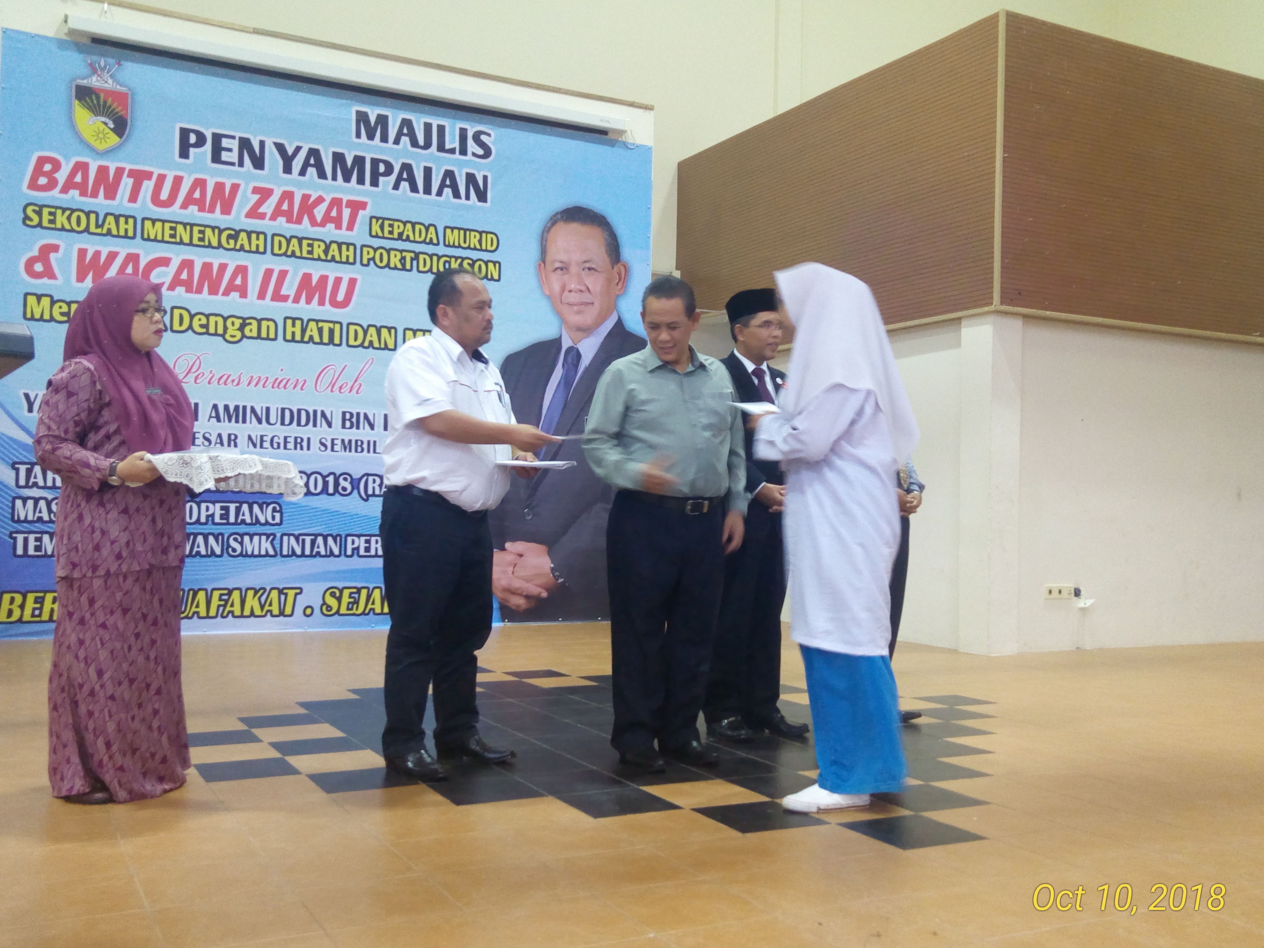 Majlis Penyampaian Bantuan Zakat bersama Menteri Besar, Untuk Pelajar Sek. Men. Keb. Intan Perdana, Si Rusa, Port Dickson (10 Oktober 2018)